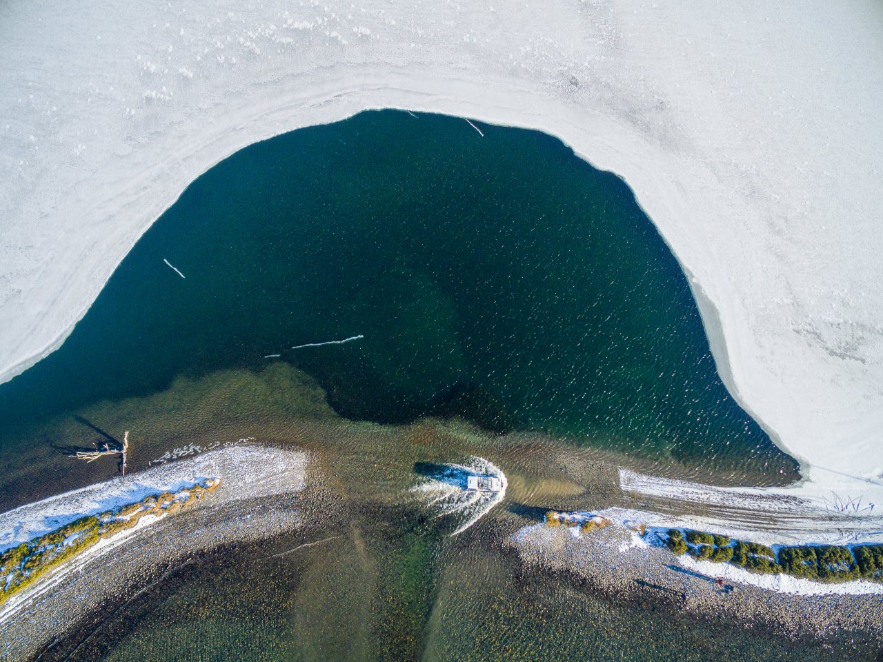 En el bosque, a orillas de la imponente costa del Lago Fagnano, dispondremos de tiempo libre para caminar y explorar la laguna Bombilla, congelada gran parte del invierno. Mientras tanto, nuestro guía preparará una abundante y reconfortante comida, que disfrutaremos cómodamente en nuestro refugio exclusivo. Ubicado en medio de este ambiente natural virgen y blanco, lejos del bullicio de la vida moderna, este momento será el broche de oro para nuestra jornada de exploración en Tierra del Fuego.