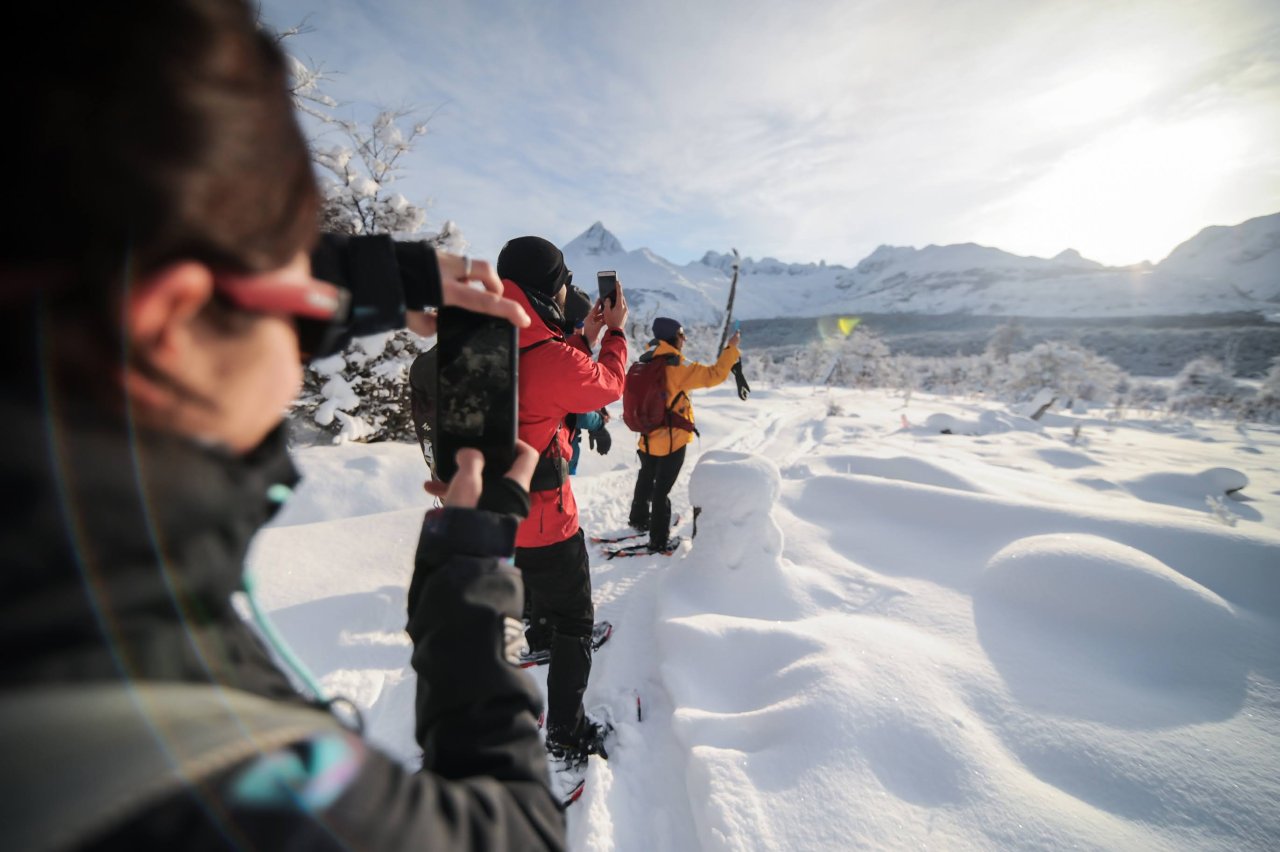 Durante las aproximadamente 2 horas de caminata hasta llegar a la laguna, exploraremos la flora y la fauna locales, y podremos observar el impacto de los castores, una especie exótica que ha modificado el paisaje. El esfuerzo de la travesía es ampliamente recompensado al llegar a la orilla .