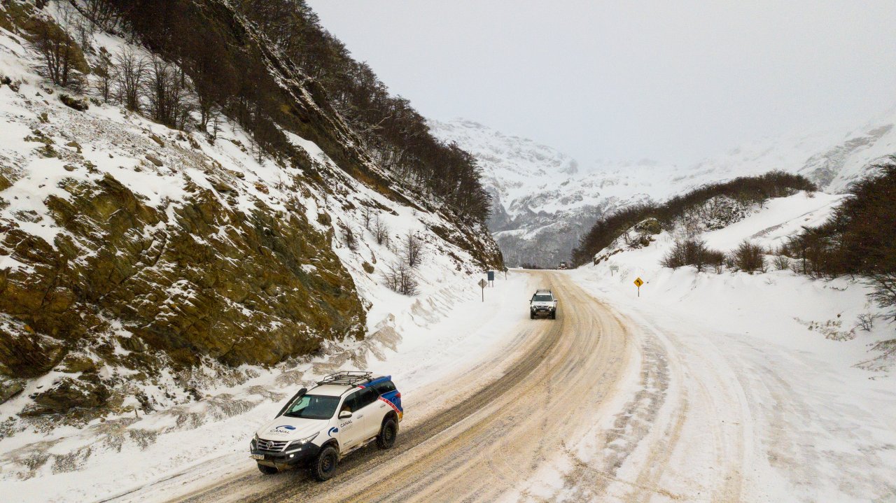 Nuestra travesía 4x4 comienza con la salida desde el hotel en Ushuaia, adentrándonos en un imponente valle glaciario cubierto de nieve. La primera etapa del viaje culmina en el Paso Garibaldi, el único paso carretero que atraviesa el majestuoso encadenamiento de los Andes Fueguinos. Desde este punto elevado de la Cordillera, tendremos una vista privilegiada de las cumbres nevadas y del Lago Escondido, una pequeña maravilla natural que más tarde recorreremos de Sur a Norte a lo largo de la Ruta Nacional 3.