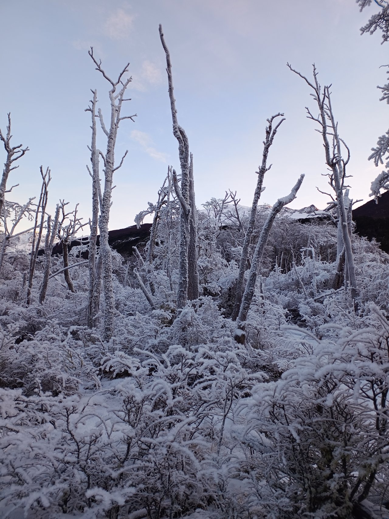 Caminaremos sobre un terreno cambiante, donde raíces, barro congelado y troncos aportan dinamismo al recorrido. A medida que ganamos altura, el paisaje se vuelve más abierto y desafiante. Nos equiparemos con crampones para avanzar con seguridad sobre nieve y hielo, cruzando sectores congelados que intensifican la sensación de expedición.