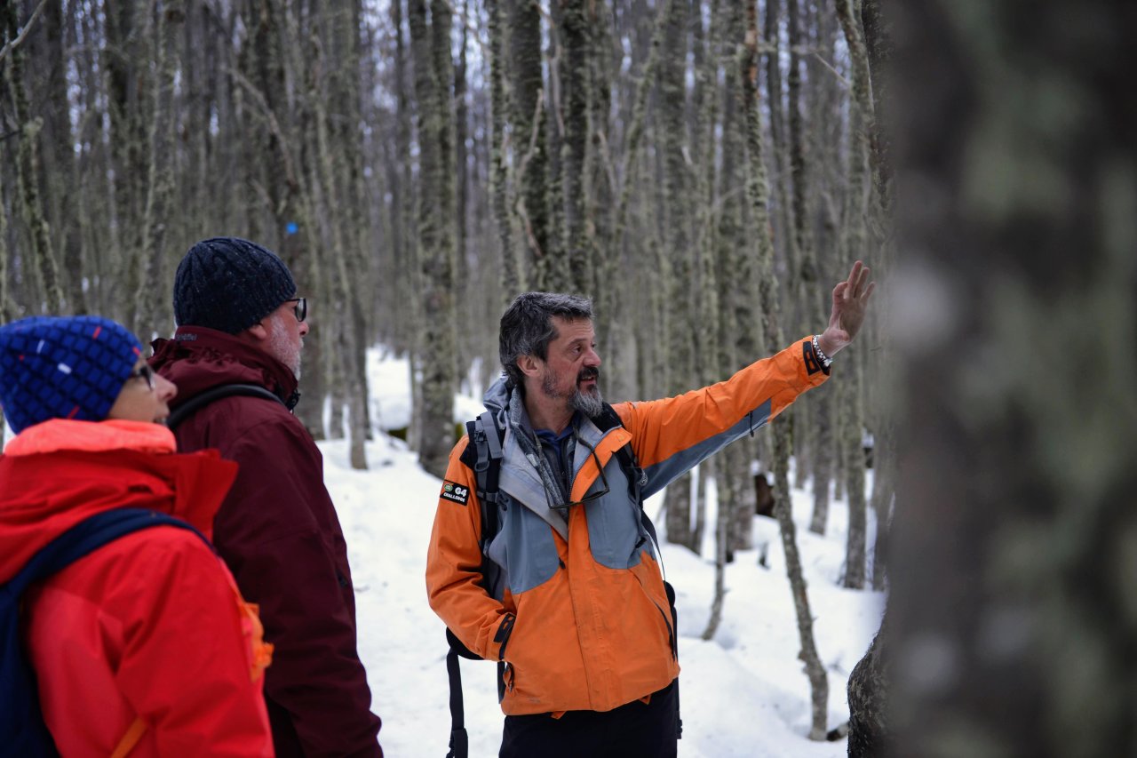 Durante las aproximadamente 2 horas de caminata hasta llegar a la laguna, exploraremos la flora y la fauna locales, y podremos observar el impacto de los castores, una especie exótica que ha modificado el paisaje. El esfuerzo de la travesía es ampliamente recompensado al llegar a la orilla .